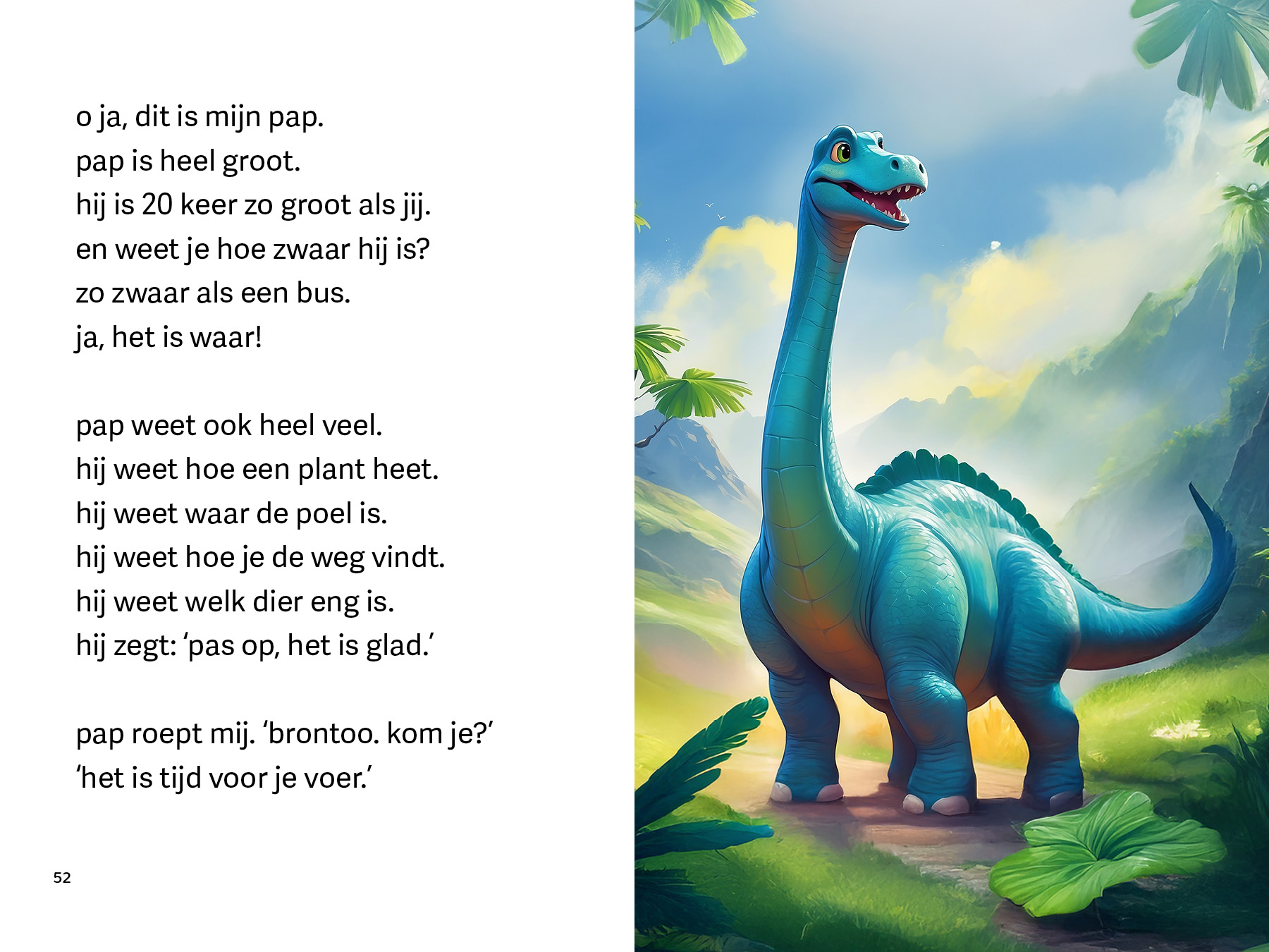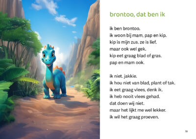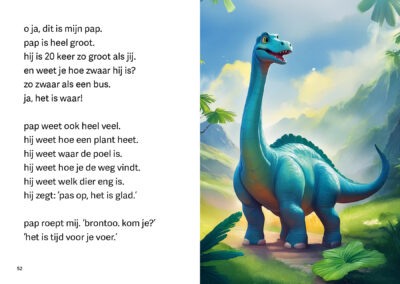 Brontoo is een dino die niet van planten houdt. Hij eet het liefst vlees. Op een dag gaat hij op zoek naar vlees, maar dan ziet hij Alloo. Alloo is heel gevaarlijk en eet graag vlees. Wat kan Brontoo doen?