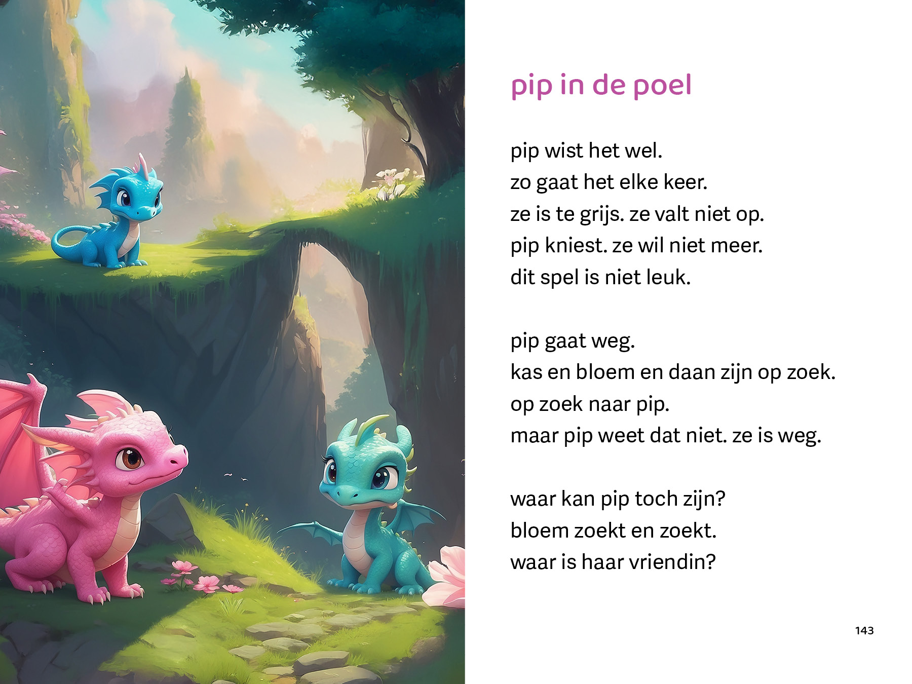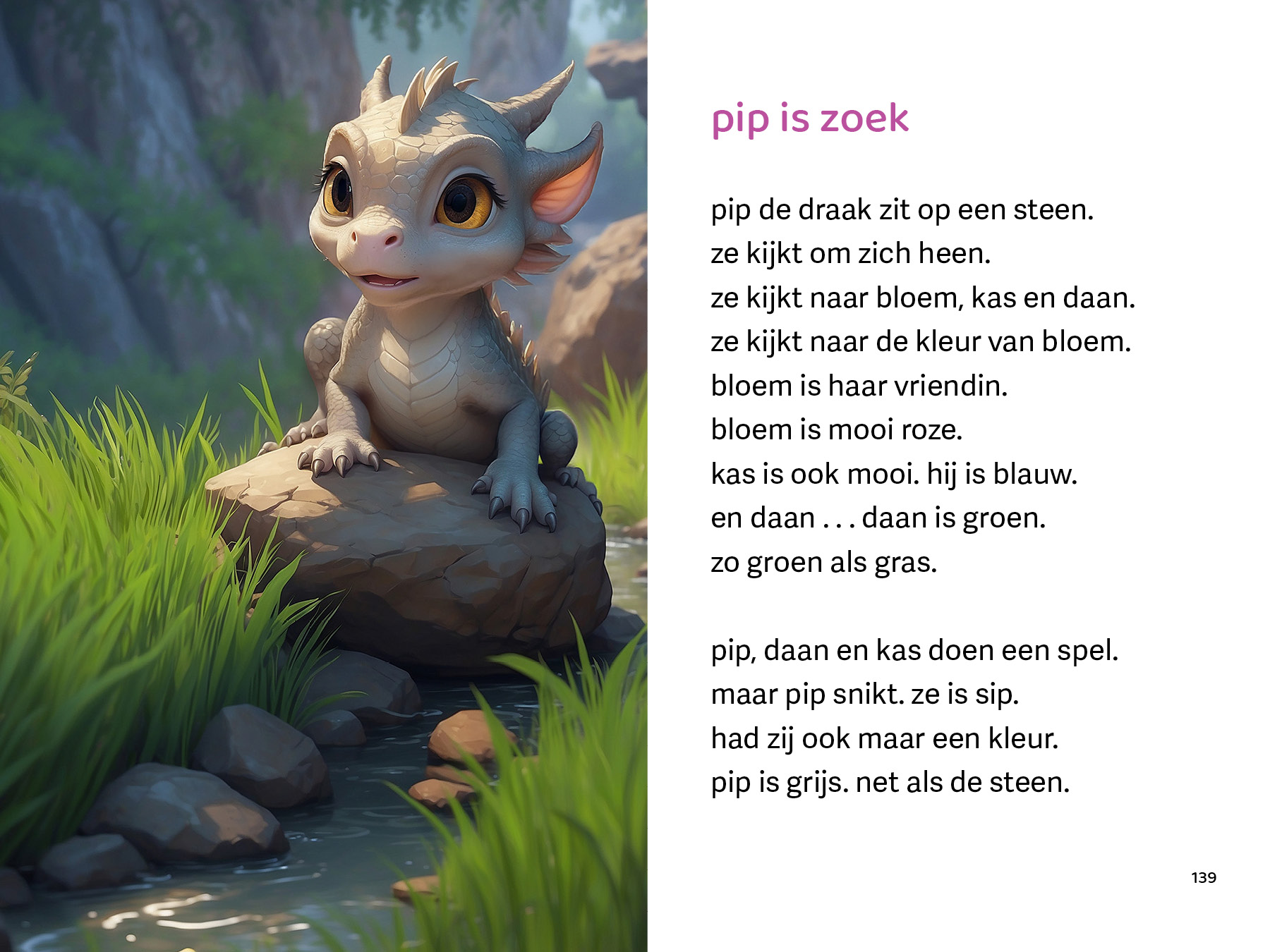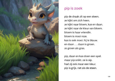 Pip is een grijze draak en dat vindt ze helemaal niks. Op een dag is ze het zat en gaat ze naar de poel. Daar ziet ze pad. Wanneer ze hem volgt komt ze in kleur-stad. Welke kleur zal ze kiezen?